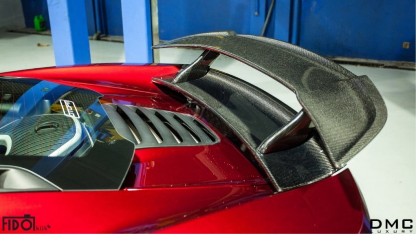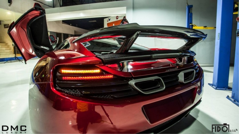 럭셔리 전문 튜너 DMC가 맥라렌 MP4-12C를 손봤다. 지난해 선보인 벨로시타의 진화형으로 ‘DMC 맥라렌 HS-12 벨로시타(Velocita) SE’란 이름을 달았다. 블랙이 메인이었던 벨로시타에 비해 이번 컨셉의 보디는 강렬한 에메랄드 레드로 화려하게 치장했다. 범퍼 아래로 지나는 공기를 모두 훑을 것만 같은 언더 스포일러를 포함한 모든 에어로파츠들은 카본 파이버 소재로 만들었으며 배기파이프는 티타늄으로 만들었다.