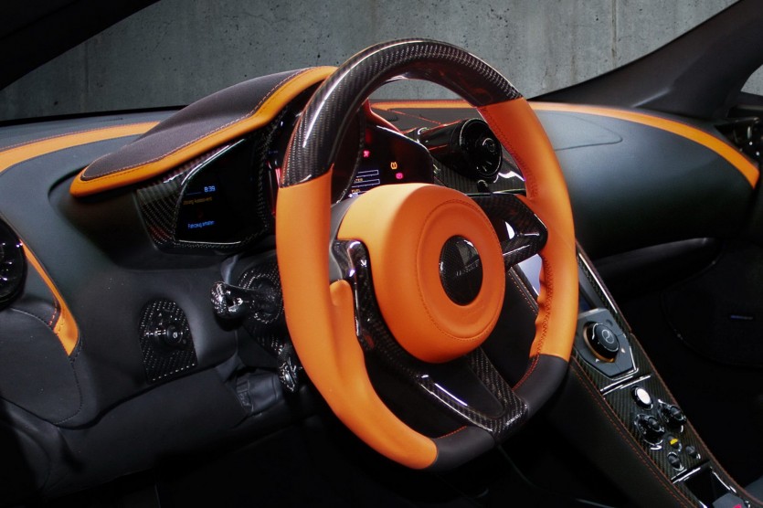 컬러풀한 외형에 맞춰 오렌지와 그레이 컬러로 실내 디자인도 화려하다. 카본 파이버 트림과 알루미늄 페달도 기본이다.