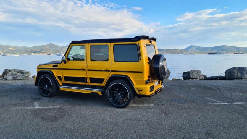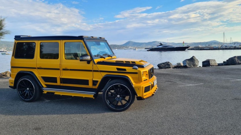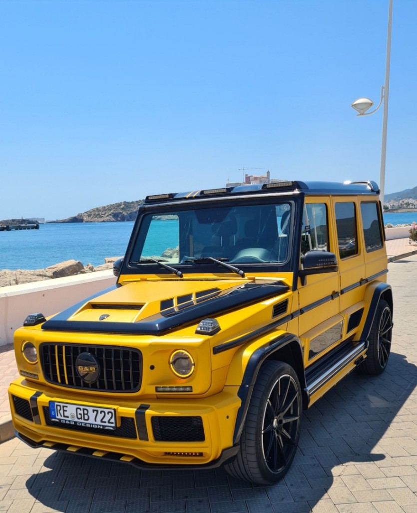 G-Boss의 웅장함을 더하는 것은 독특한 사이드 스커트와 플레어 휠 아치입니다. G&B Design은 또한 경량 탄소 섬유로 만든 새로운 스페어 휠 커버, 미러 캡 및 리어 범퍼를 디자인했습니다. 사진의 예는 검은색 액센트와 대조되는 독특한 Solarbeam 무광택 페인트 구성도 특징입니다.