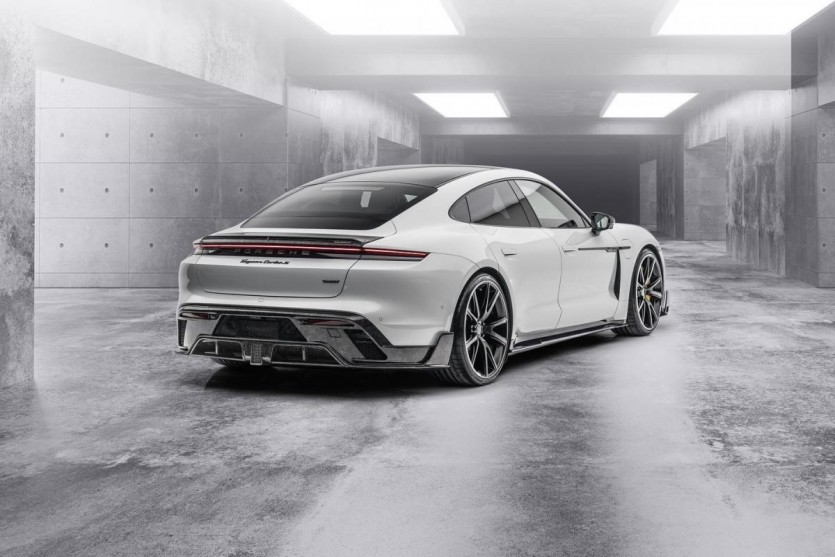 타이 칸의 후방에도 많은 변화가있었습니다. 예를 들어 탄소 섬유 립 스포일러와 독특한 디퓨저가있는 새 범퍼가 있습니다.