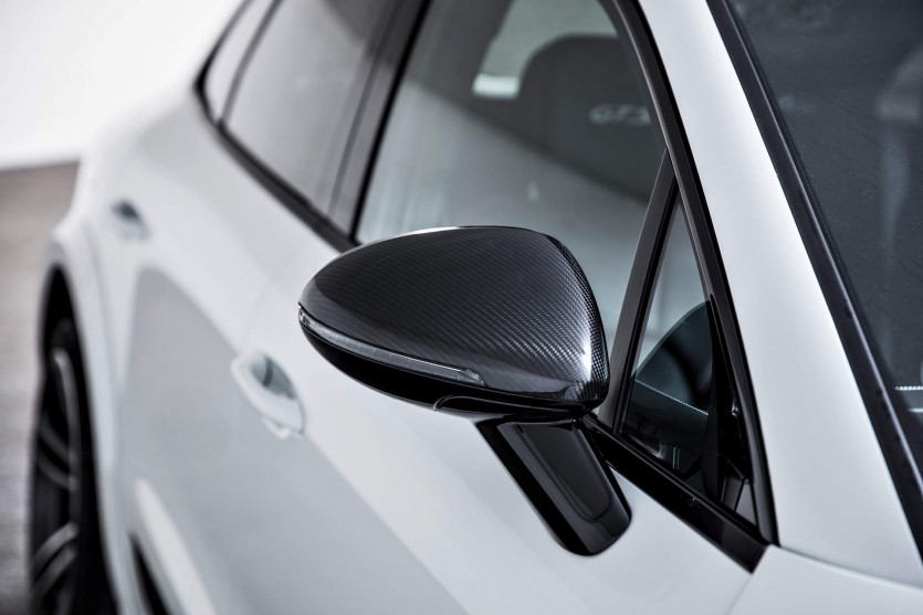 페이스리프트를 통해 새롭게 등장한 마칸과 보조를 맞추기 위해 소소한 변화를 가져왔다. 앞뒤 범퍼의 액세서리를 비롯해, 루프 스포일러, 사이드 미러 커버 등에서 카본 소재가 주는 아름다움을 극대화했다. 둥근 펜더 안에는 21인치 테크아트 포뮬러 4 휠과 고성능 타이어를 품었다.