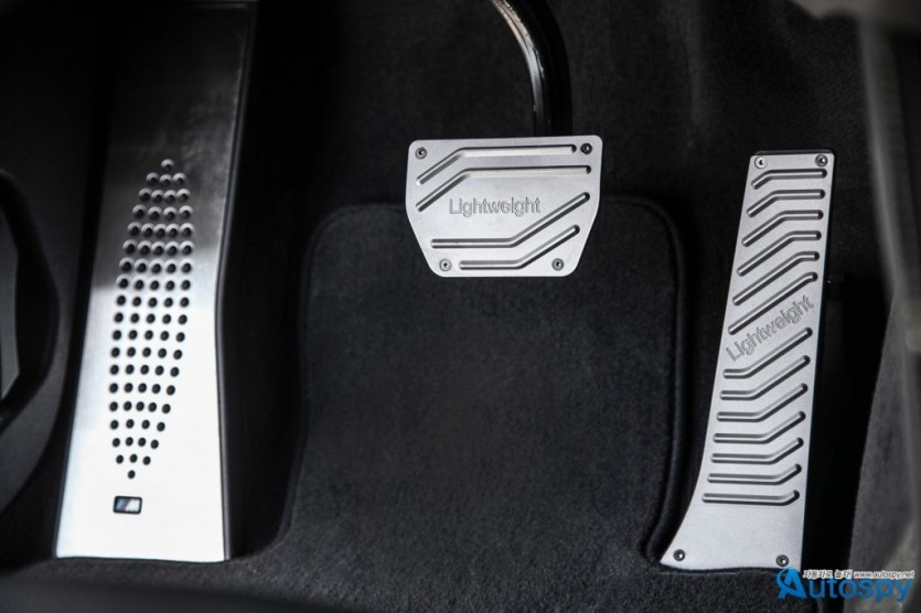 실내는 블랙 알칸타라와 전용 센터터널 장식이 돋보이며 알루미늄 페달의 디자인도 독특하다.
