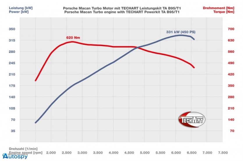 외모의 변화에 걸맞게 파워 향상도 이뤄졌다. 마칸 터보의 V6 엔진은 ECU 튜닝으로 손쉽게 최고출력이 450마력으로 50마력 오른다. 스포츠 혹은 스포츠 플러스 모드 기준으로 제로백이 4.4초로 0.2초 단축되며 최고시속은 271km로 5km/h 정도 향상된다.