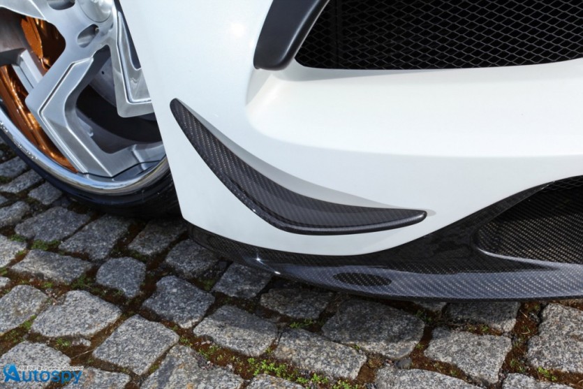 데모카의 경우 다이아몬드 화이트 보디 컬러를 채택했고 앞쪽에 20인치, 뒤에 21인치 휠과 265/30, 325/25 사이즈의 타이어를 끼웠다.
