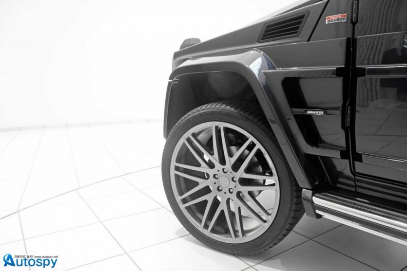 메틸릭 블랙으로 보디 전체를 씌운 다음 안개등과 LED 주간주행등을 감싼 범퍼 디자인을 새롭게 했고 그릴과 휠아치, 리어 범퍼의 형태도 기본형보다 조금 더 스포티하게 꾸몄다. LED 브레이크등과 브라부스 로고가 선명한 스페어타이어 커버가 뒷모습의 특별함을 말해준다. 블랙톤의 테마는 실내에도 그대로 이어졌다. 스포츠 타입의 스티어링 휠을 달았고 곳곳에 피아노 블랙 하이그로시와 카본 소재로 포인트를 주었다.