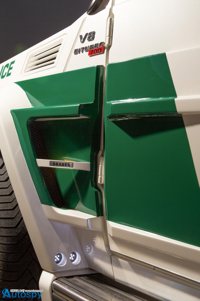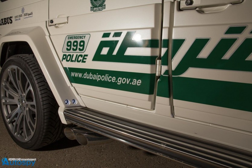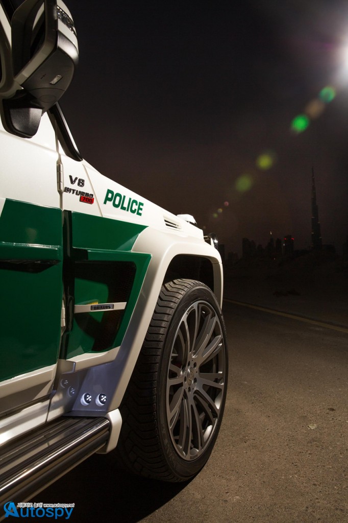 독특한 경찰차를 통해 홍보효과를 톡톡히 보고 있는 두바이 경찰이 이번엔 제로백 4.9초의 몬스터급 SUV를 영입해 눈길을 끌고 있다. 주인공은 벤츠 G63 AMG를 베이스로 개발된 ‘브라부스 B63S-700 와이드스타’로 2013 두바이모터쇼에 모습을 드러냈다.