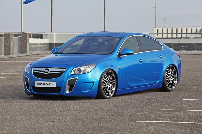 차고 조절식 에어서스펜션을 단 오펠 인시그니아 OPC가 등장했다. MR 카디자인(MR Car Design)이 커스터마이징한 모델로 휠하우스를 가득채운 20인치 휠과 타이어가 가장 먼저 눈에 띈다. 차체를 최대로 낮추면 거의 바닥을 긁는 수준.