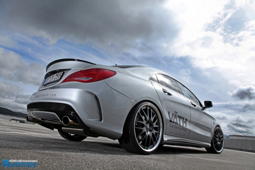 독일 튜너 뵈쓰(Vath)가 벤츠 CLA250 베이스의 컴플릿카 V25를 선보였다. 과격함보다 밸런스를 중시하는 뵈쓰의 특징을 살려 프론트 범퍼의 카본 립 스포일러(1,416유로)와 리어 스포일러(333유로) 등으로 포인트를 주고 전용 3피스 타입의 20인치 휠 및 고성능 타이어(앞 225/30 ZR20, 뒤 265/25 ZR20)를 세팅했다.