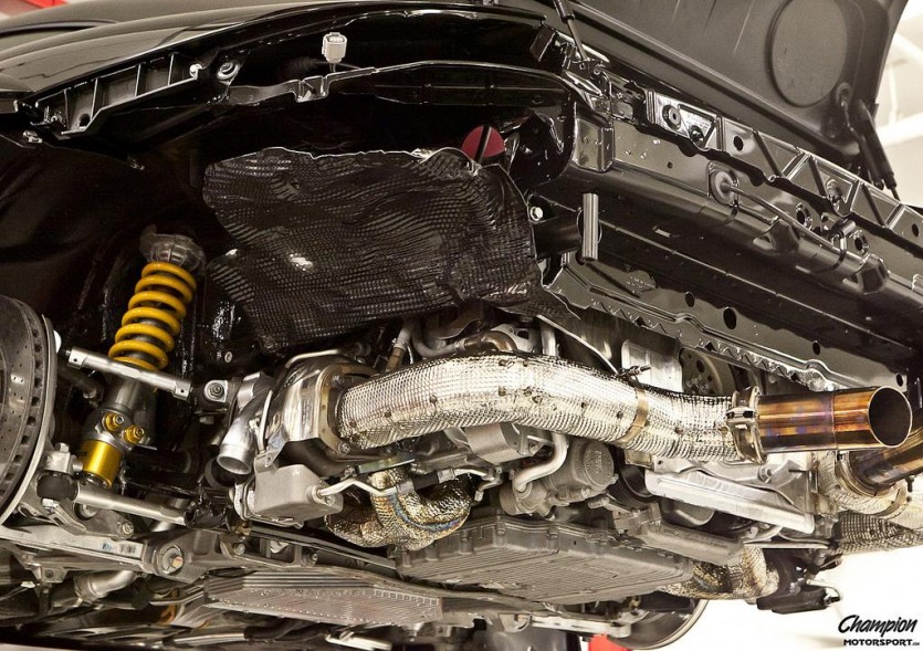 개조범위는 상당해 거의 새차를 만드는 수준이었다고. VTG 터보를 붙여 575마력을 내고 카본 파이버로 만든 RSR 보디 키트를 사용했으며 에어로다이내믹 효과를 극대화하기 위해 RSR 전용으로 개발된 언더 플로어를 달았다. 여기에 직관식 배기 파이프를 뽑고 서스펜션 암도 손봤다.