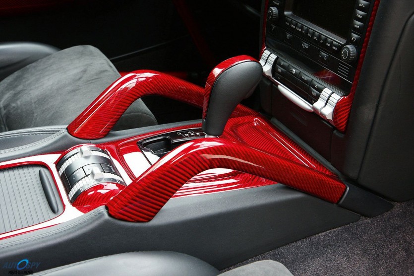실내는 레드컬러의 페인팅과 롤 케이지로 스파르탄한 이미지를 강조했다. 스티어링 휠과 센터페시아 등 곳곳에 레드 카본 파이버로 포인트를 주었고 폼나는 레이싱 버킷 시트는 GT3에서 가져온 것이다.