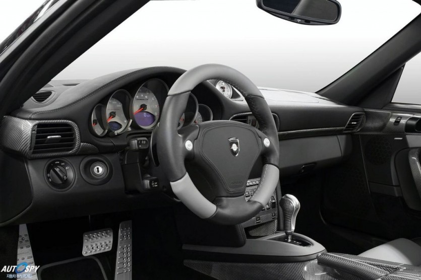 이번 변화의 핵심은 활짝 핀 버터플라이 스타일의 도어와 카레라 GT를 닮은 헤드램프 디자인. 테일램프를 새 911에서 가져왔고 디퓨저와 4파이프 테일 머플러를 감싼 카본 디퓨저도 이전과 다른 모습이다.