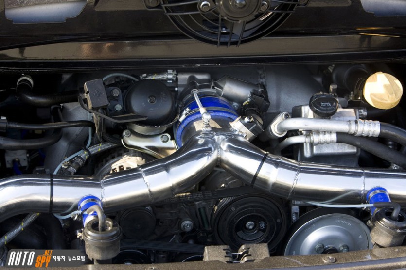 티타늄 소재로 바꾼 컨텍팅 로드와 단조 피스톤, 경량 크랭크 샤프트는 고회전과 내구성을 고려한 선택이다. ECU 리맵핑으로 최적 컨트롤 시스템을 구성했으며 흡기와 배기 모두 9ff의 노하우를 쏟아 부어 완성도를 높였다. 최고출력 910마력에 최대토크 910Nm의 강력한 엔진은 1,300kg에 불과한 차체를 전광석화처럼 가속시킨다.