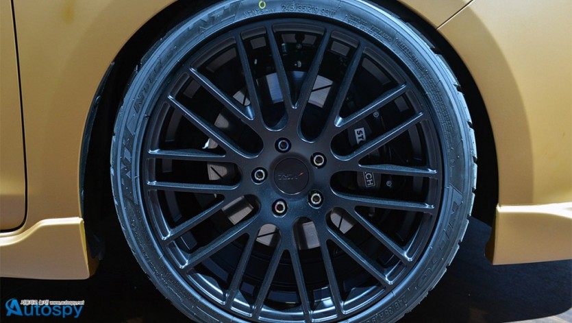 보디 전체를 3M사의 ‘1080-M229’와 ‘1080-M211’ 래핑필름을 이용해 꾸몄고 19인치 매트 블랙 휠과 245/35 R19 니토 NT05 맥스 타이어를 끼워 스포티한 분위기를 냈다. 서스펜션과 브레이크는 테인 수퍼 스트리트와 스톱텍 빅 브레이크 시스템이다.