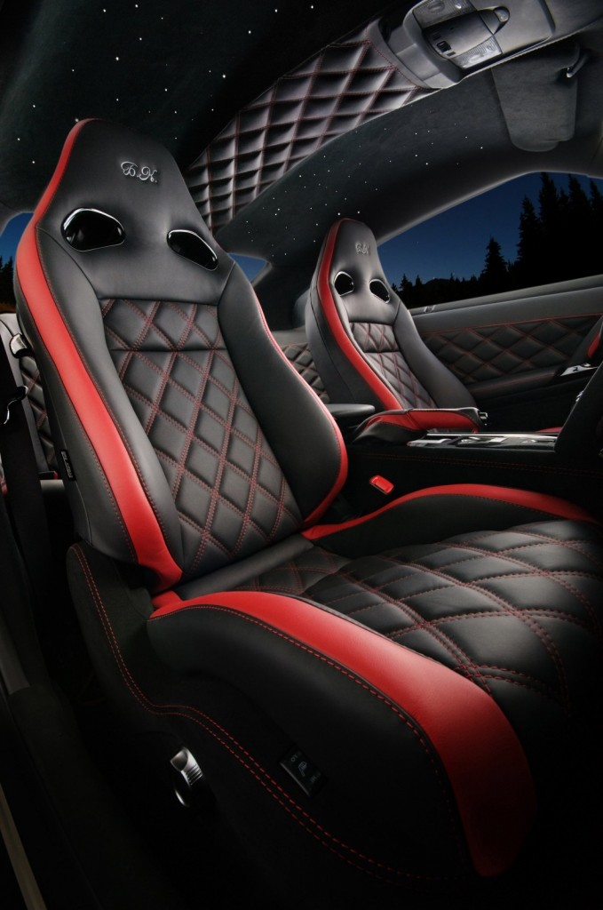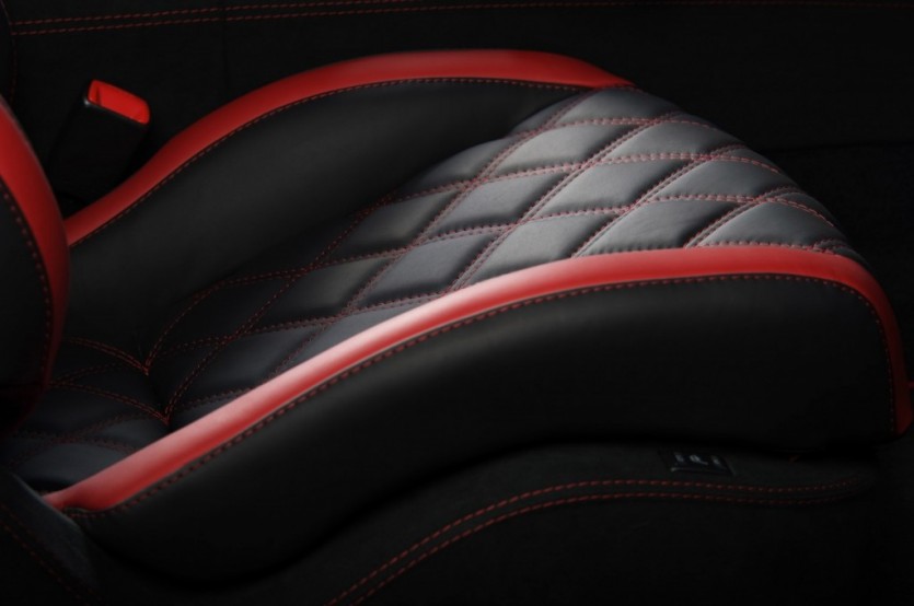 별 장식을 제외한 실내의 대부분을 알칸타라와 최고급 가죽으로 꾸몄는데 블랙바탕에 레드 스티치의 조화가 멋스럽다.