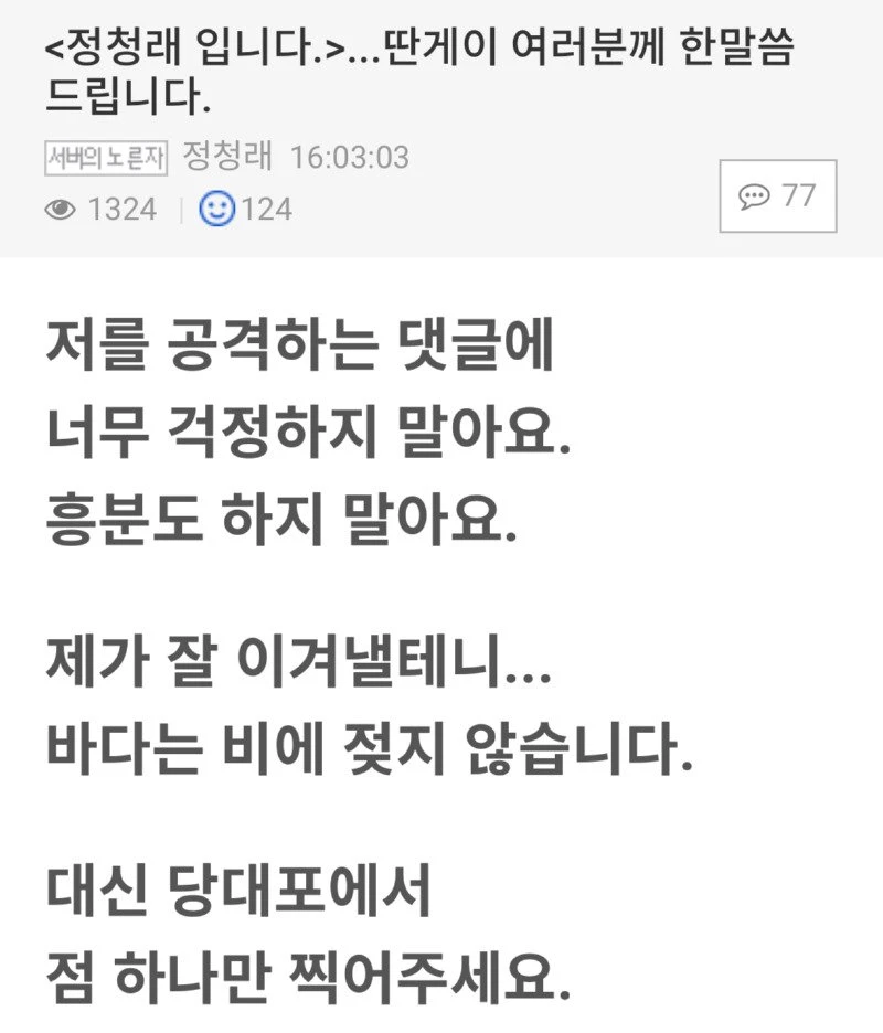 딴지에 글 올린 정청래