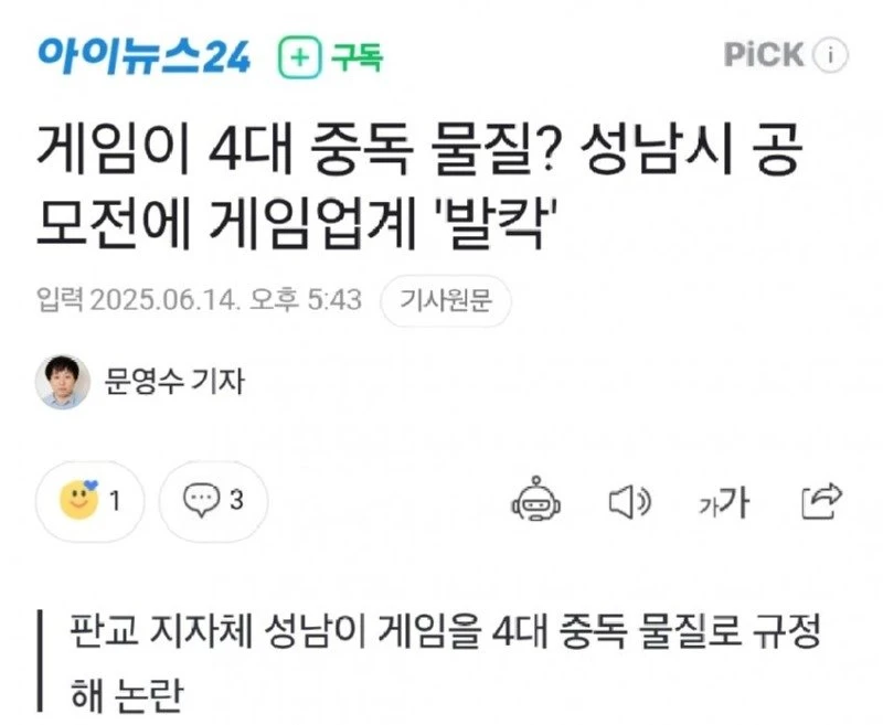 한국 게임 산업의 중심에서 게임 중독을 외치는 성남시