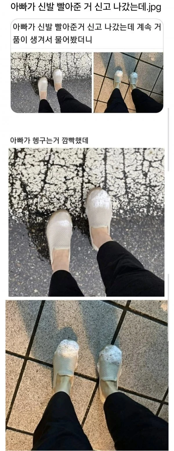 아빠가 빨아준 신발 신고 니욌는데