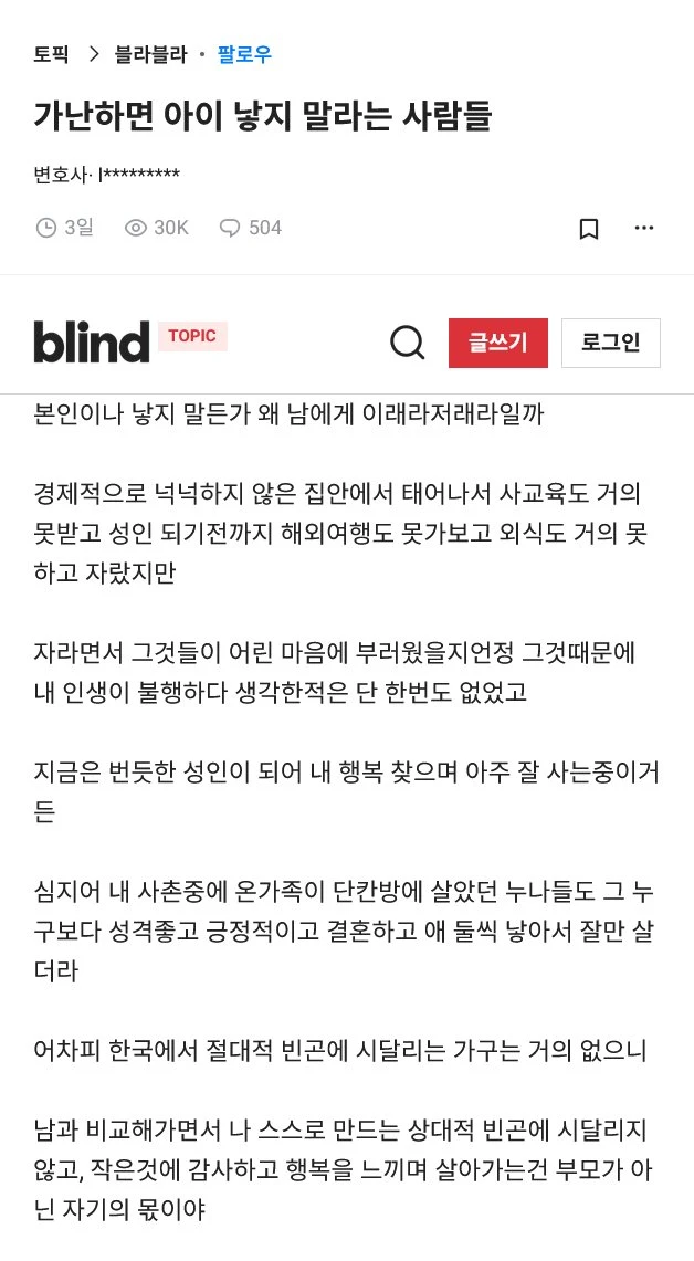가난하면 아이 낳지 말라는 사람들이 이해 안가는 변호사