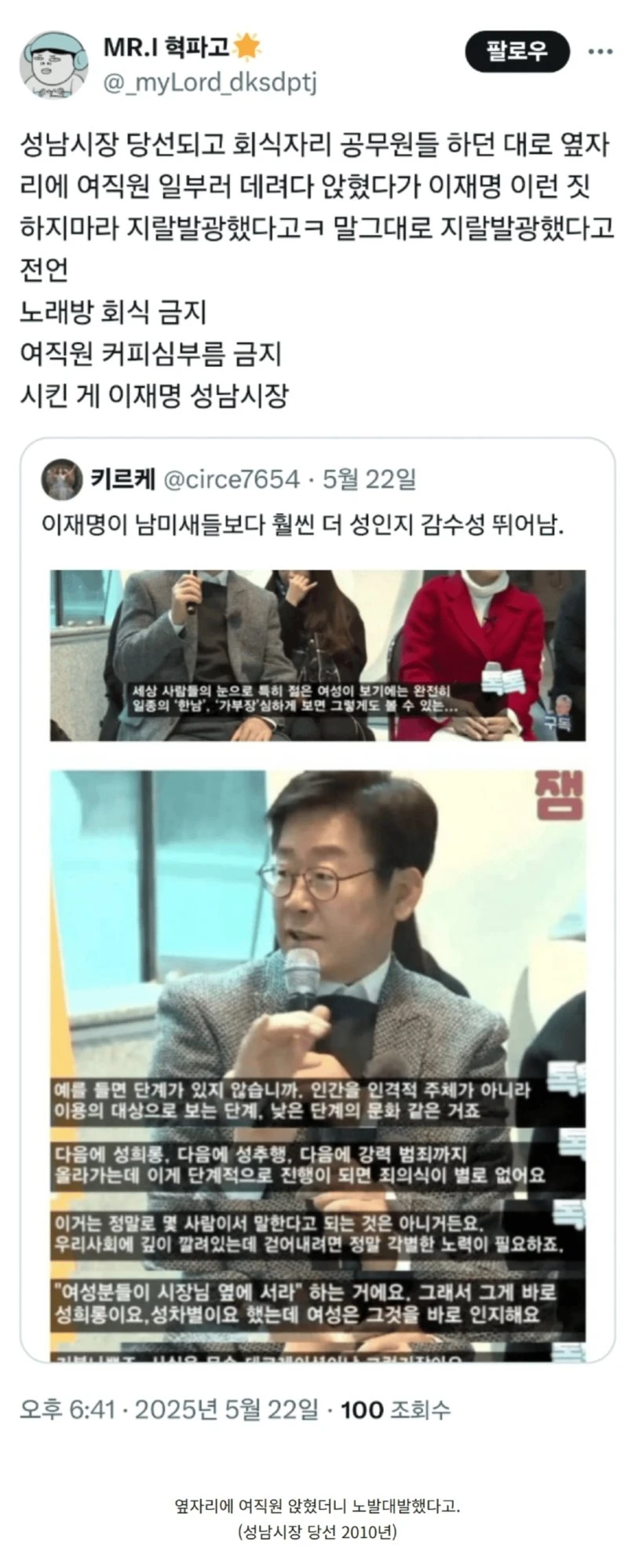 "여성분들이 시장님 옆에 서라" 하는거예요. 그래서 그게 바로 성희롱, 성차별이요 했는데 여성은 그것을 바로 인지해요.