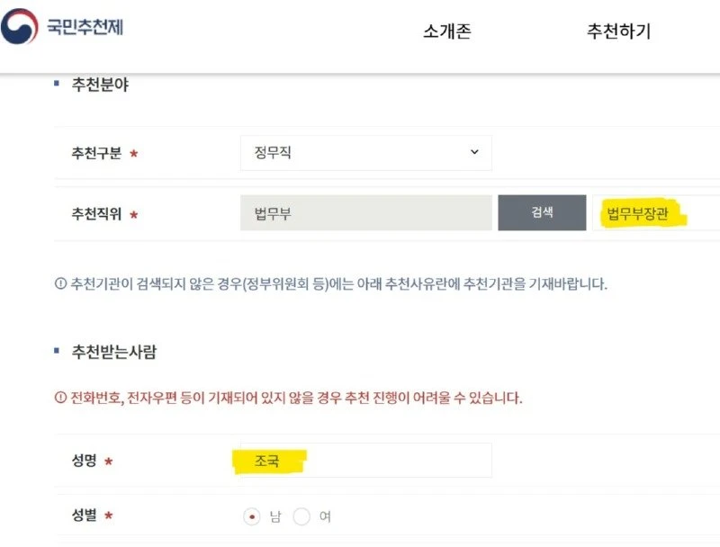 [인증] 조국 전 대표를 다시 법무부장관으로 국민추천제 등록