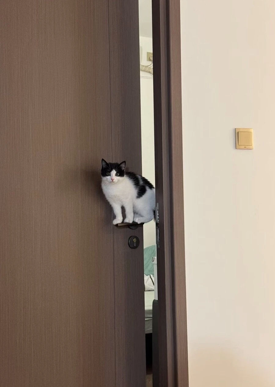 유머) 문손잡이에 앉아있는 고양이 본 적 있음?
