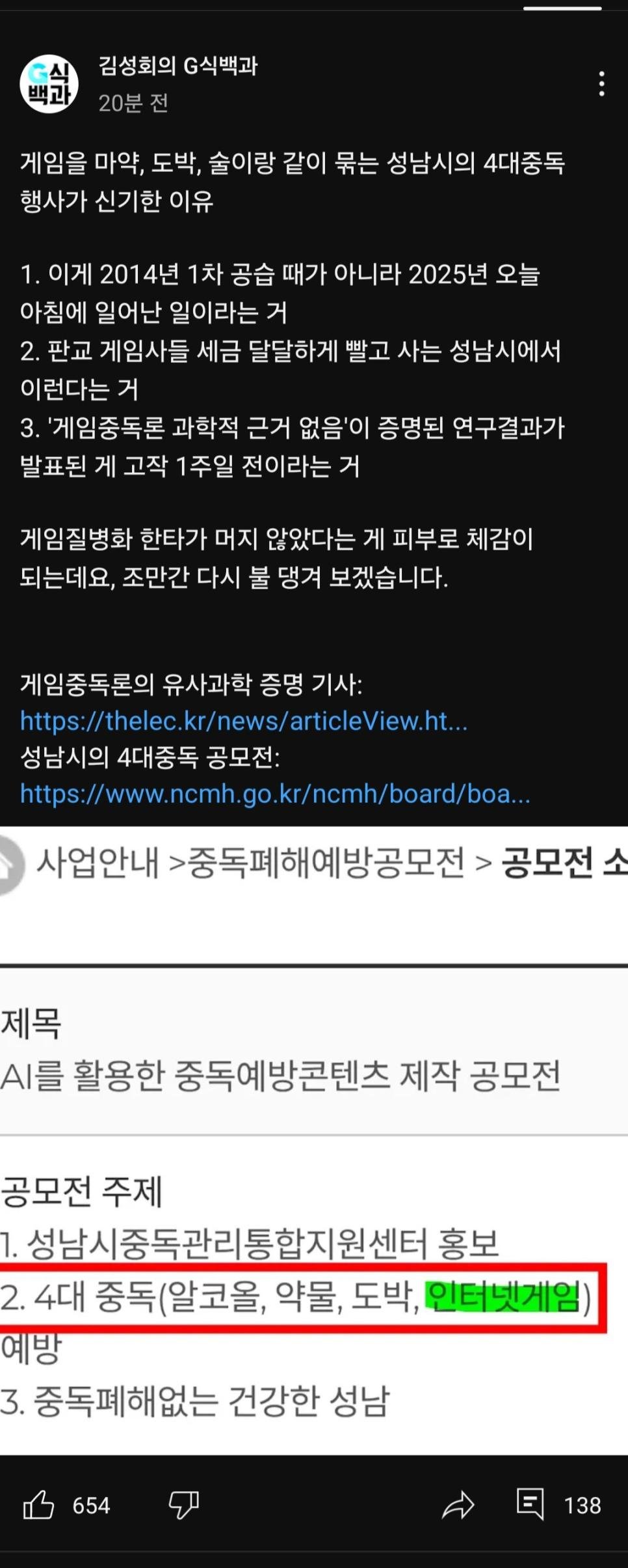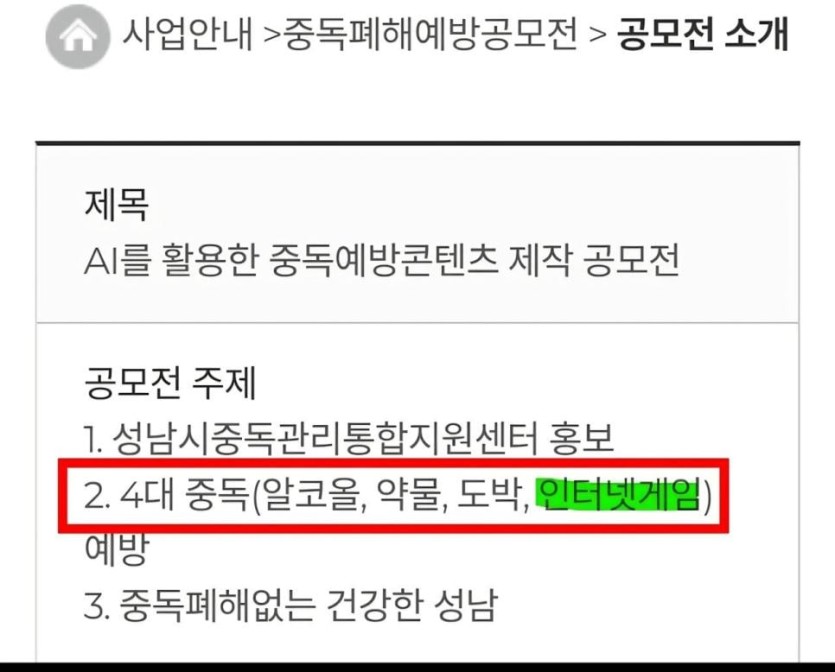 성남시) 게임은 마약,도박,술과 동급이다ㄷㄷ(#G식백과)