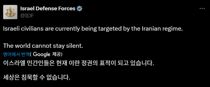 이스라엘군, 이란이 민간인 대학살을 목적으로 전국을 초토화시키고 있다.jpg
