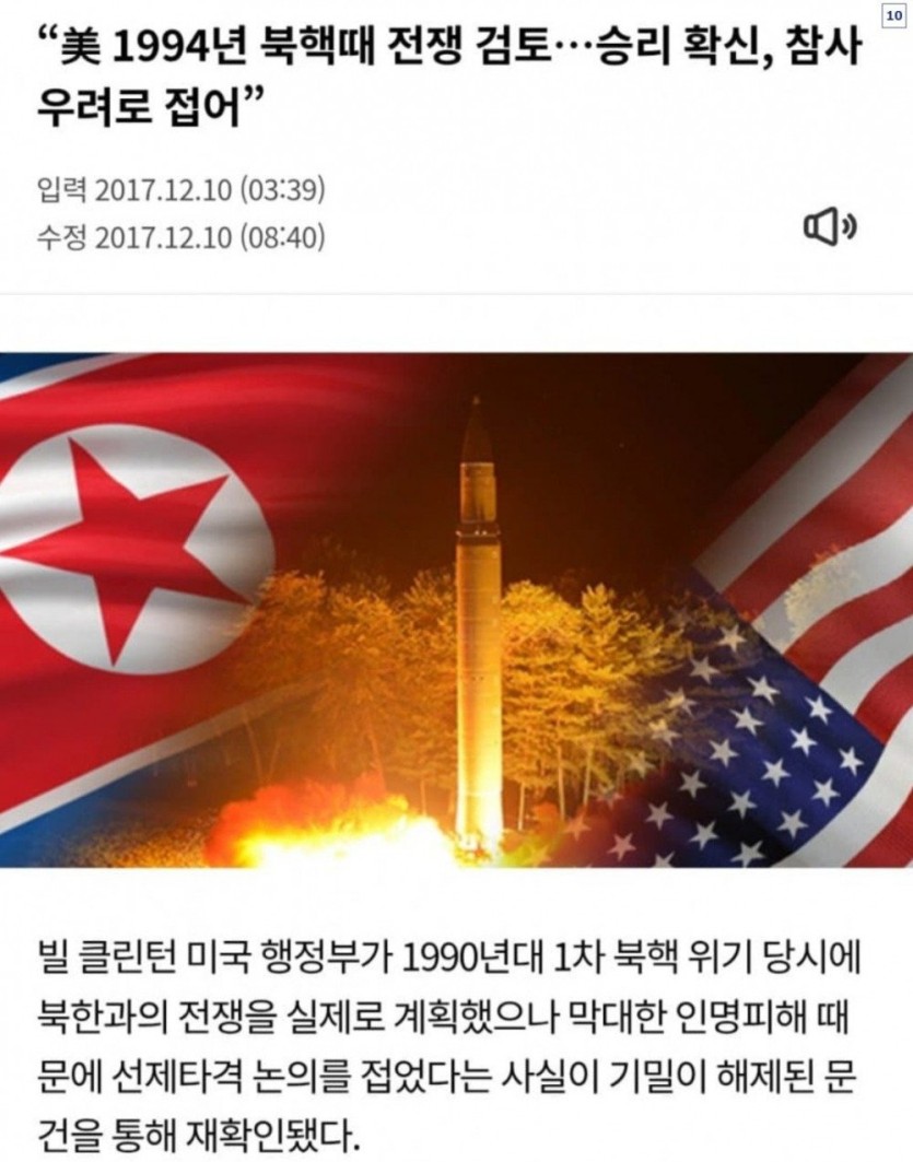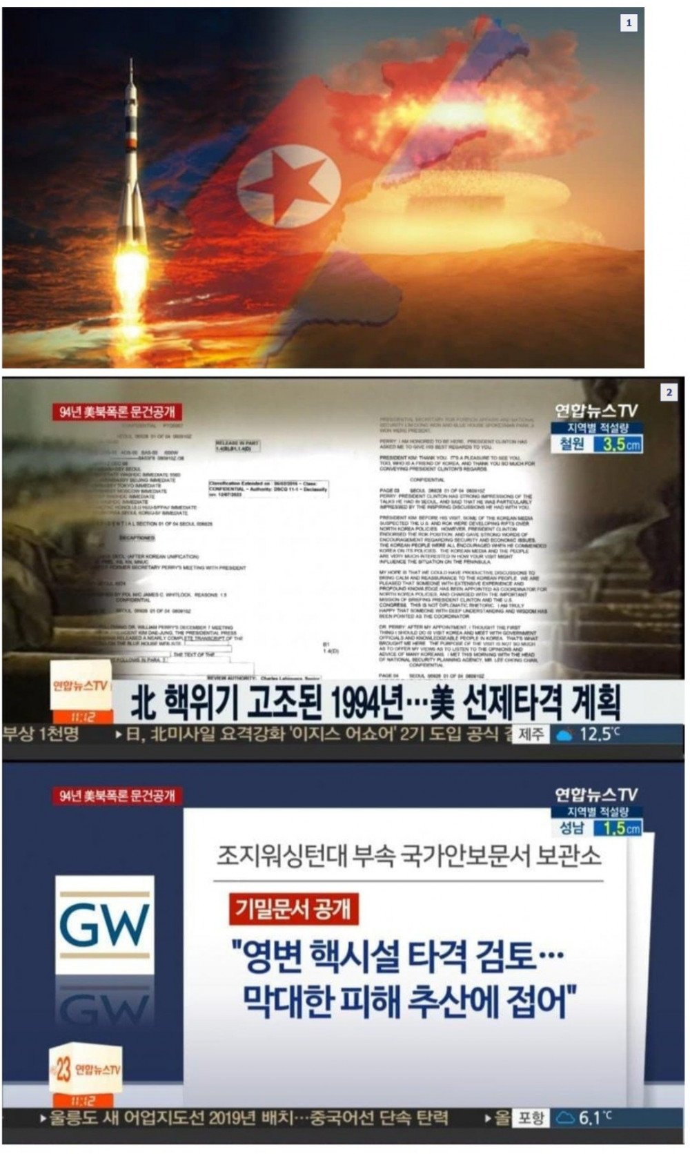 북한이 처음으로 핵개발을 시작하자미국이 평안북도 영변을 공습하려다가거센 반발로 취소함...