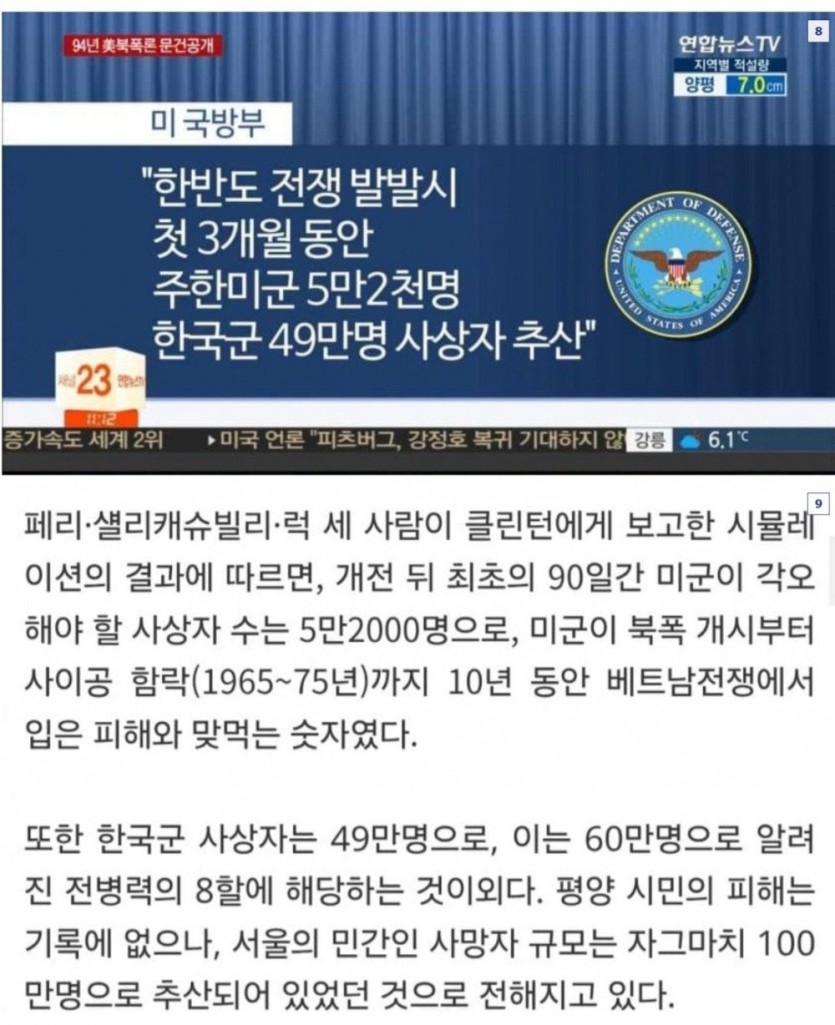 당시 폭격 이후 시뮬레이션미군 5만 2000명 사망한국군 49만명 사망한국 민간인 100만명 사망