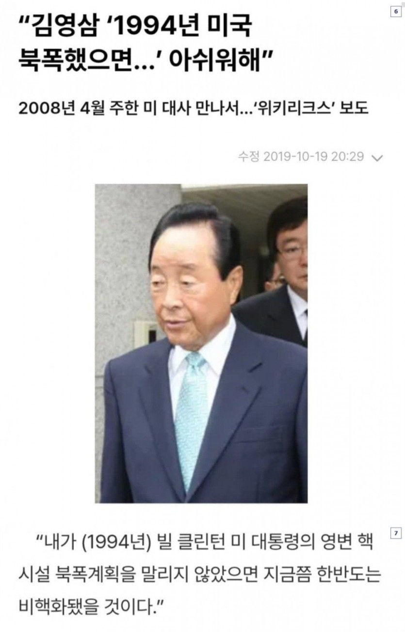 빌 클린턴 대통령"CIA랑 김영삼이 말렸는데 그래도 폭격할 걸 그랬다"