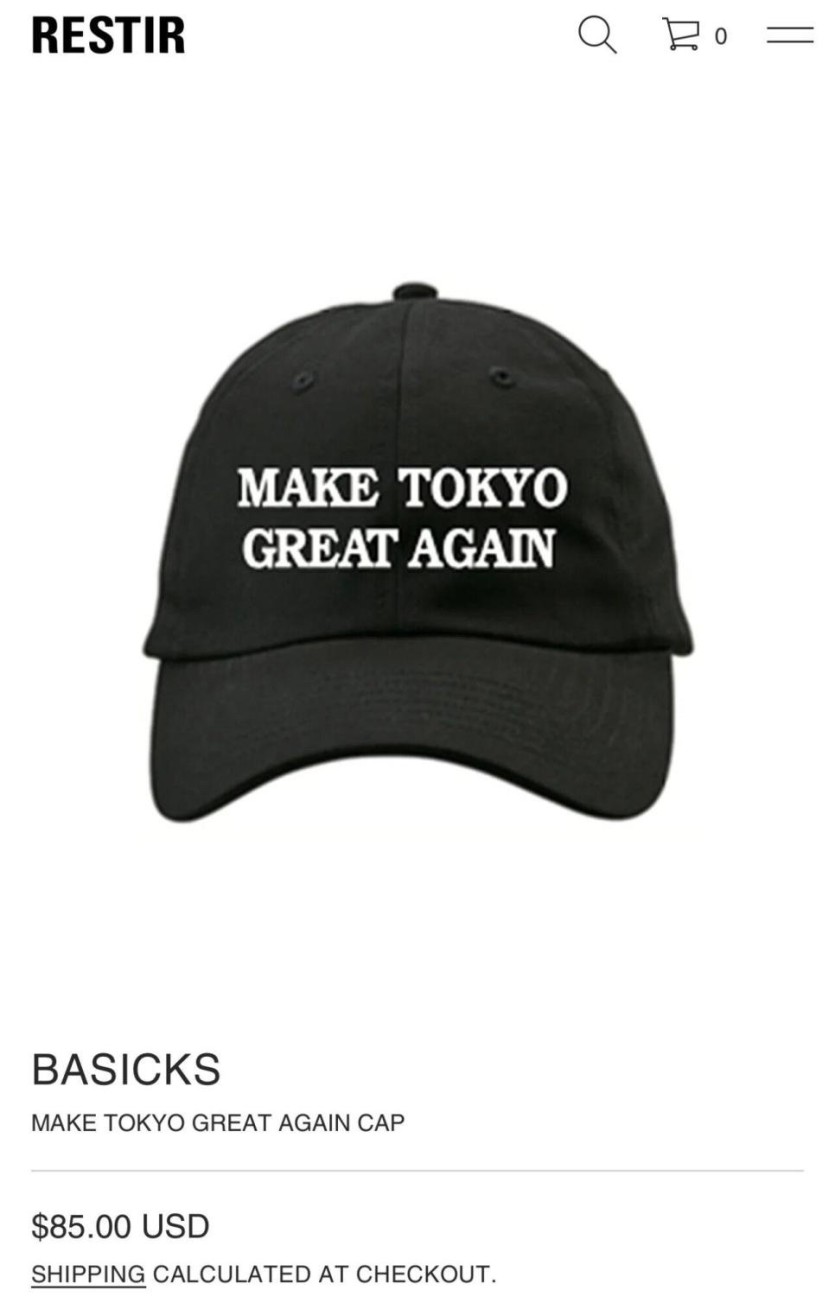 아니 왜 도쿄를 다시 위대하게 모자를 쓰냐?