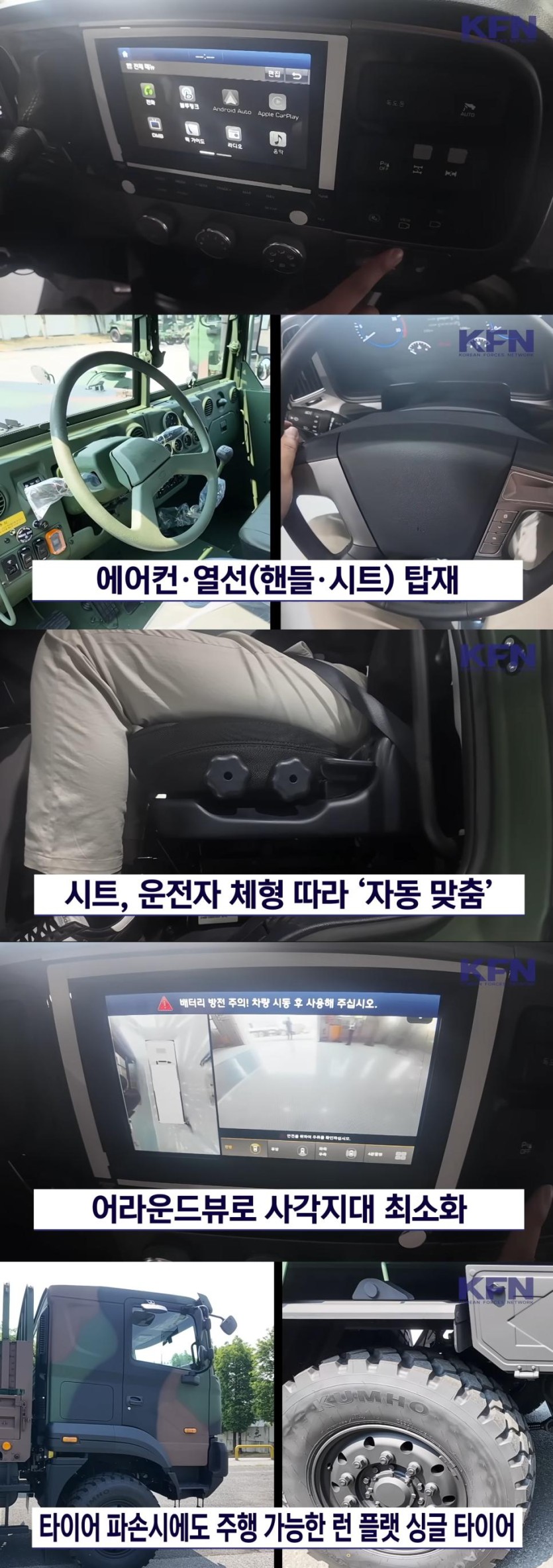 기아, 두돈반, 5톤 풀체인지 rh1 0 97 0 2025.06.13 22:45 군용 표준차량 차세대 모델 양산 및 인도 시작이번에 양산되는 중형표준차는 48년만에 선보이는 차세대 모델차량 : 2.5톤, 5톤디젤 엔진8단 자동변속기2.5톤 : 280마력5톤 : 330마력수심 1m 하천 도섭, 60% 종경사 및 40% 횡경사 주행, 전자파 차폐 설계, 영하 32도 냉시동, 런플랫 타이어, 최대 25명 탑승(5톤)이 특징어려운드 뷰, 에어 서스펜션 시트, 전후방 카메라, 내비게이션 등 최신 편의 사양 대거 포함 0