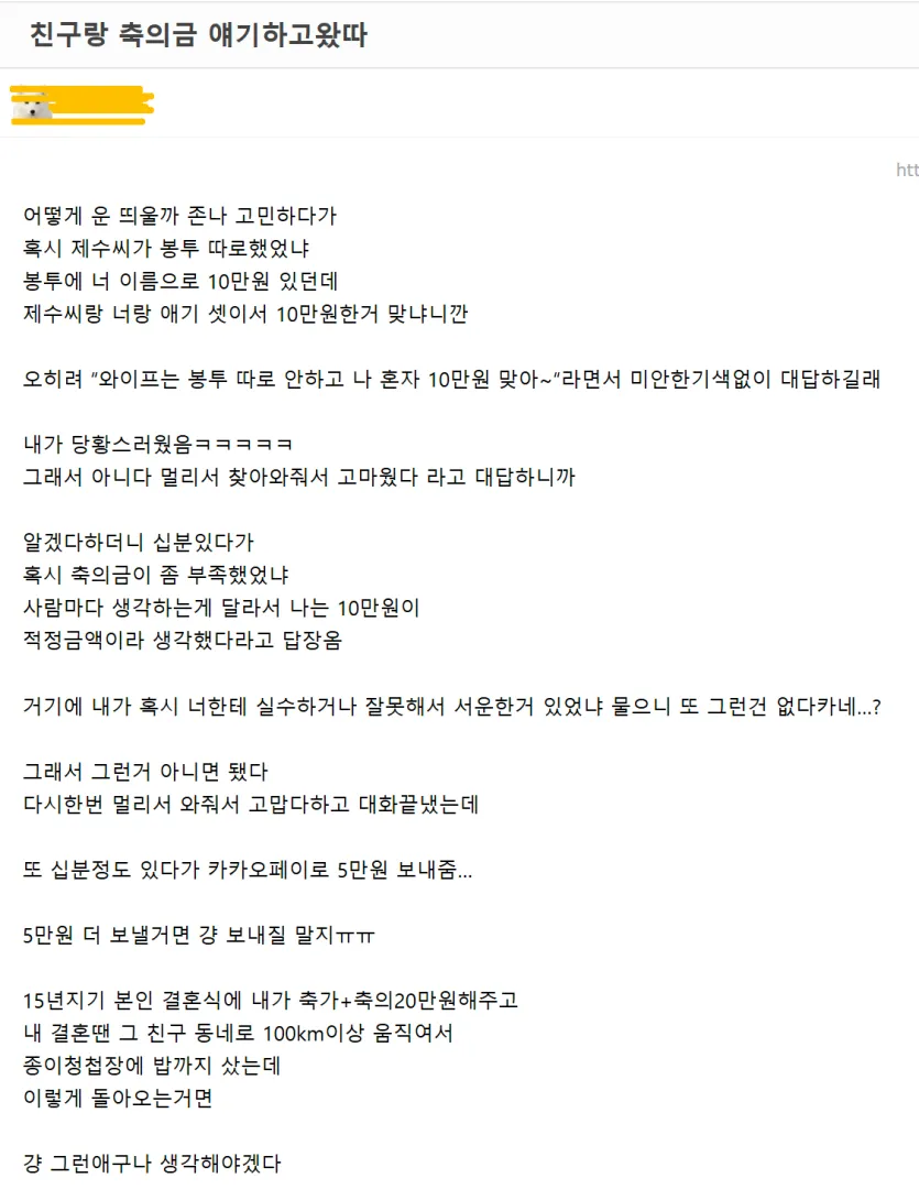 친구랑 축의금 얘기하고 온 썰