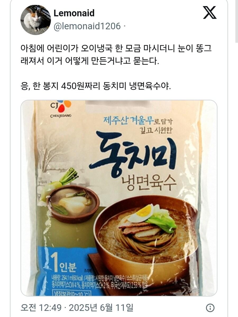 엄마가 만들어준 오이냉국맛에 감탄하는 아이