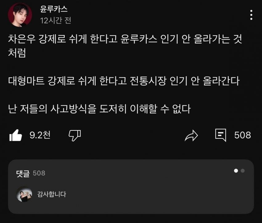대형마트 강제휴업에 윤루카스 일침 ㅋㅋ