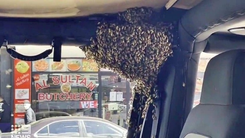 그리고 차에 다가갔을 때, 자신의 차를 점령한 벌떼에 놀라 아무 것도 할 수 없었다.