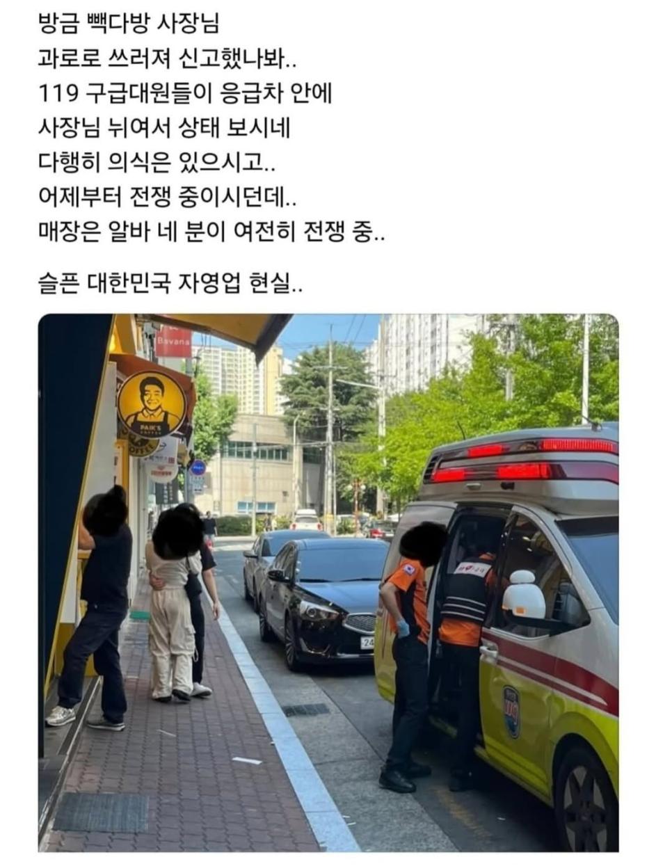 빽다방 사장님 쓰러졌데요