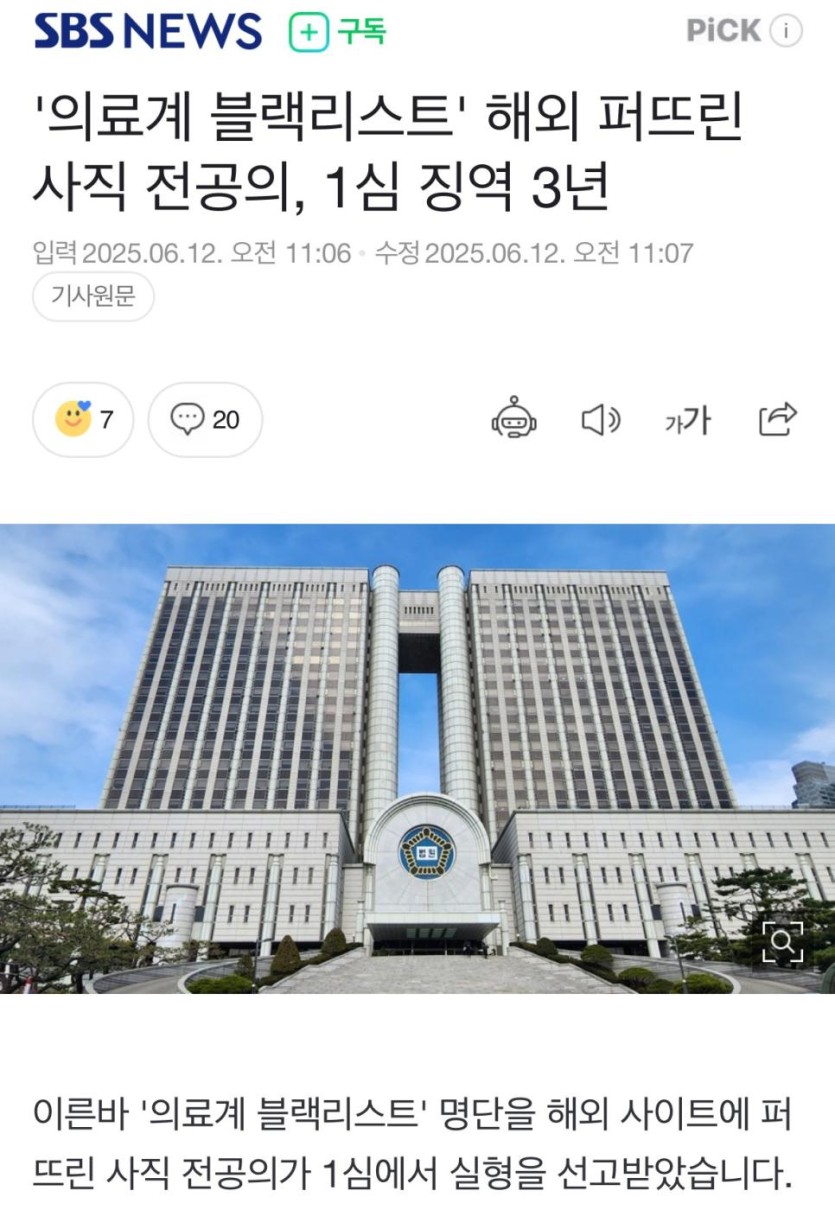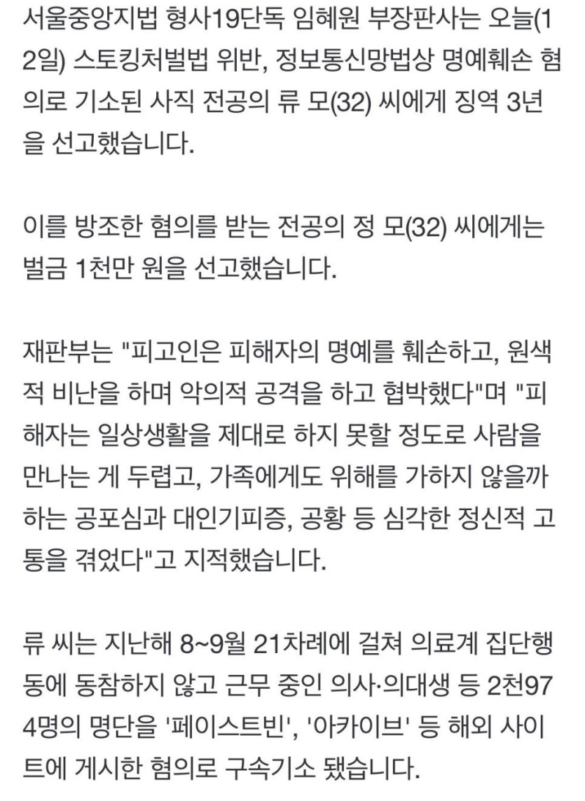 '의료계 블랙리스트' 해외 퍼뜨린 사직 전공의, 1심 징역 3년