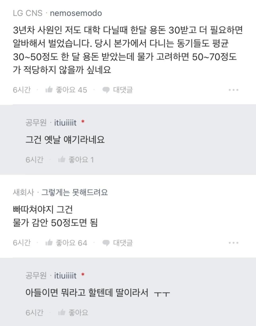 용돈150만원 달라는 대학생딸 때문에 고민인 공무원
