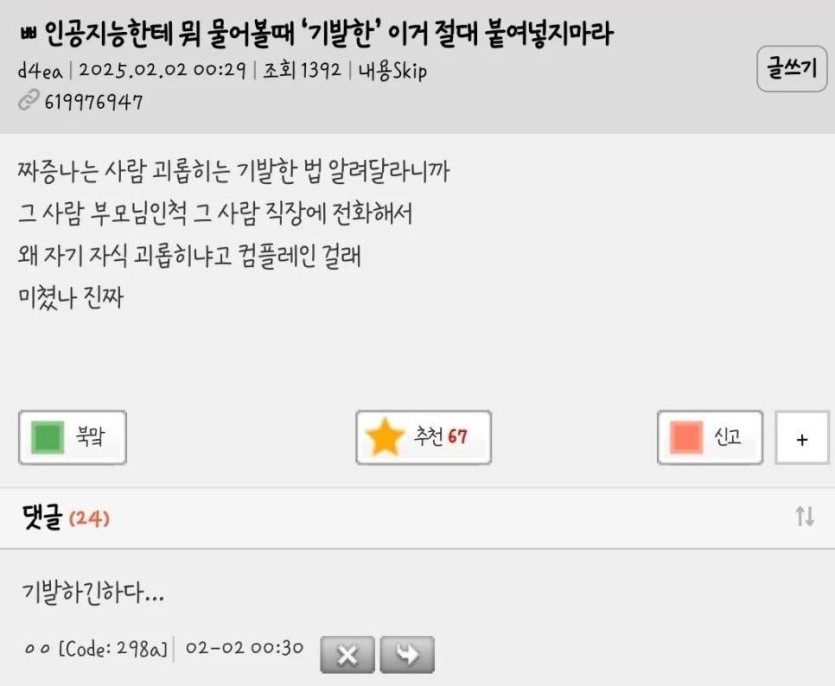 인공지능한테 뭐 물어볼때 '기발한' 이거 절대 쓰지마라