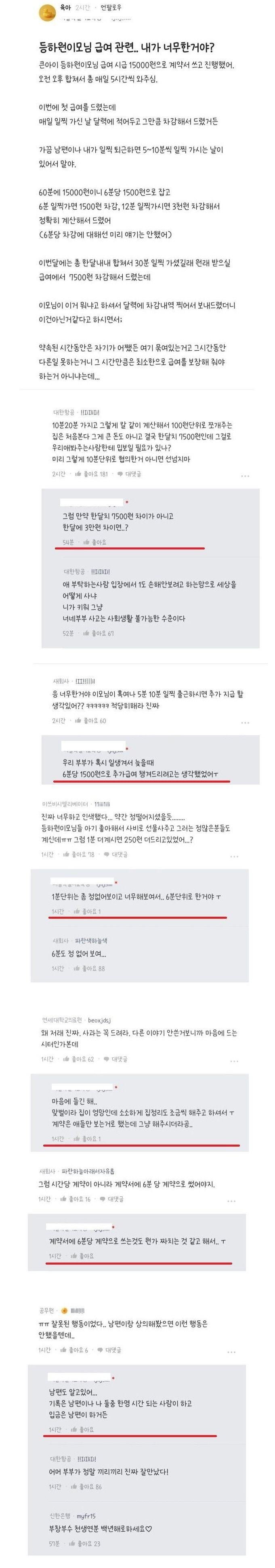 등하원 이모님 급여 논란