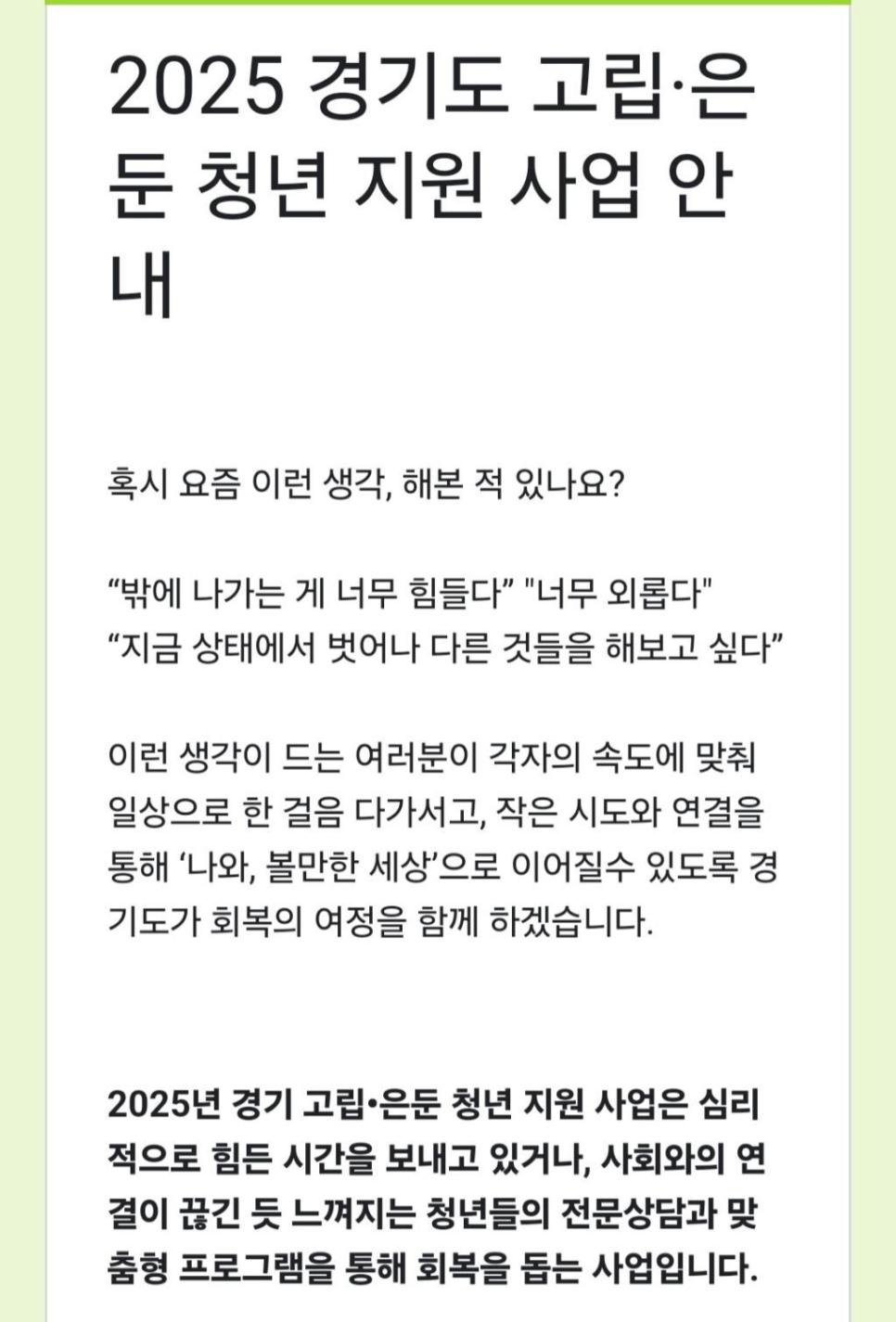 경기도 히키코모리 고립은둔 청년 프로그램 참여자 모집중