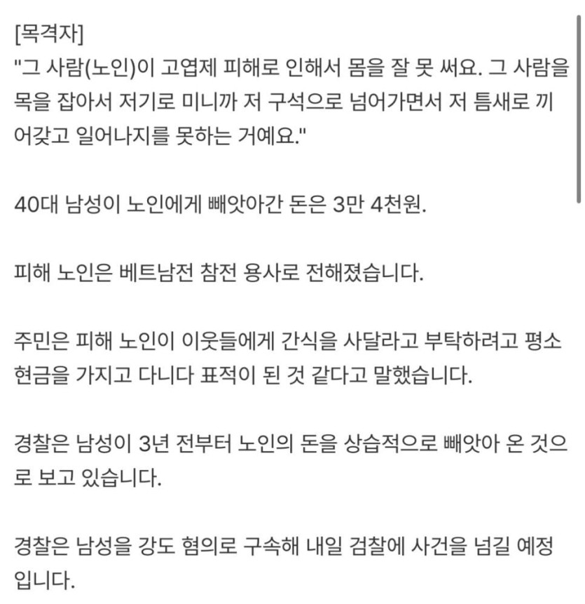 [단독]참전용사 폭행…“3년간 돈 빼앗아”