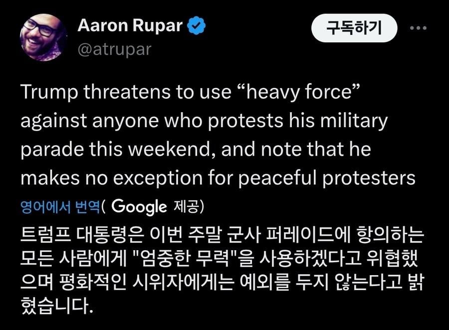 '트럼프는 왕이 아니다(No Kings)'라는 구호가 확산되고 있다고 합니다.