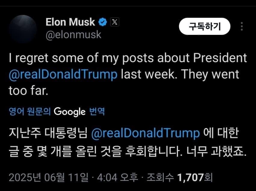 트럼프 형님 이렇게 머스크 아우가 무릎을 꿇었습니다 이제 됐습니까
