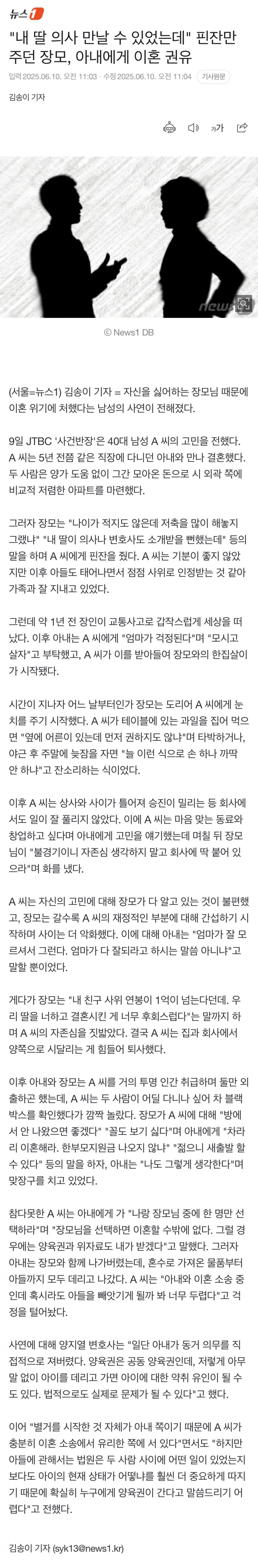 “내 딸 의사 만날 수 있었는데” 핀잔만 주던 장모