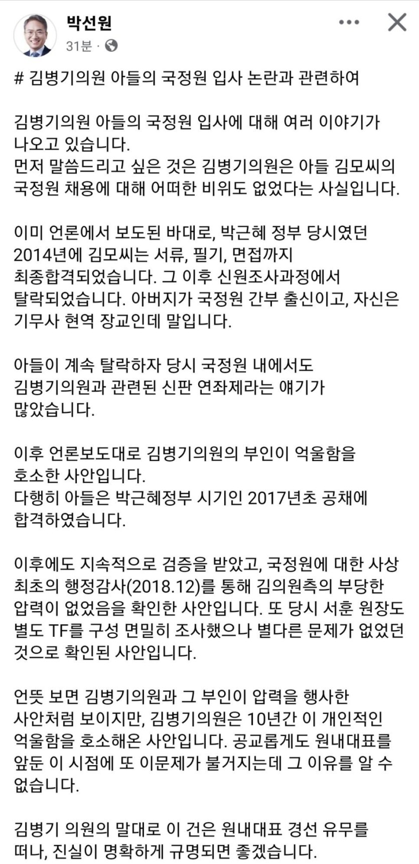 박선원 의원 - 김병기의원 아들 국정원 입사 논란 관련하여. jpg