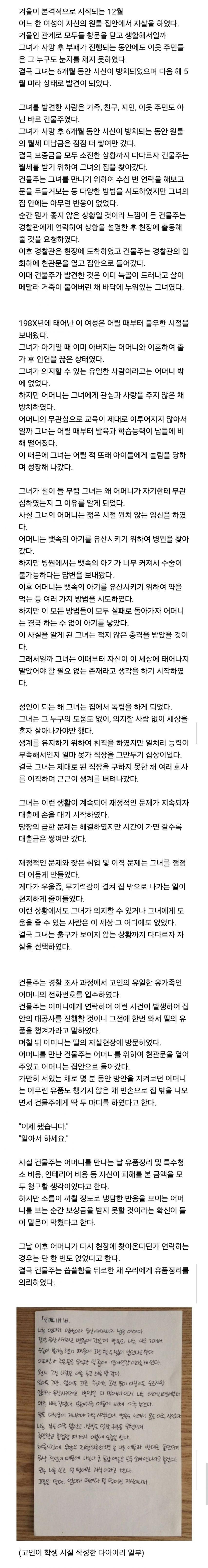 어느 자살 현장에서 발견된 다이어리..