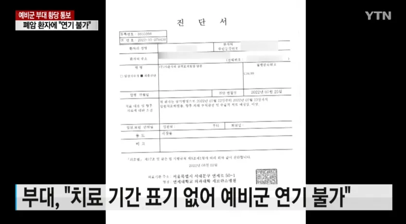 2023년 폐암환자 예비군 연기불가