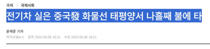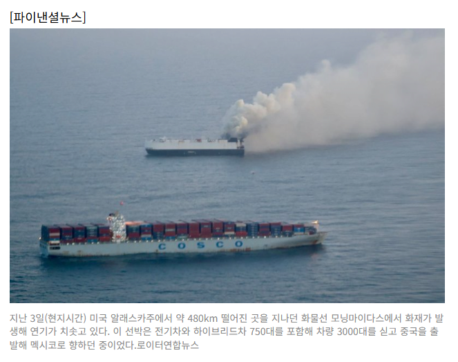 중국 전기차 BYD 근황 rh1 0 96 0 2025.06.10 23:15 1. 배송중에 터져서 바다에서 아직도 불타는중 2. 중국 선원들은 화재진압 못하고 그대로 퇴선 3. 패밀리카로 타면 절대 안 될듯... 중국 전기차 BYD 근황 0